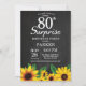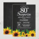 Convite de Aniversário para 80 de Surpresa de Girassol. Flores Florais e Fundo Chalkboard. Retro De Vintagem Do País. Aniversário das mulheres. 15 12 13 16º 18º 20 21rua 30 40º 50º 60º 70 90 100º, qualquer idade. Digital Imprimível.