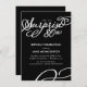 Este 80 surpresa de 4,5" x 6,25" moderno e elegante apresenta as palavras "80 surpresa" em letra branca com um design de giro correspondente no canto inferior direito. Personalize este convite de tendência com o nome e as informações da parte e qualquer cor de fundo de sua escolha.