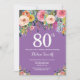 Convite de Aniversário para 80 Floral Roxo para Mulheres. Flor Floral de Aquarela. Fundo Violeta Lavanda Lilac Roxo. Rosa, Amarelo, Laranja, Flor Roxo. Aniversário Adulto. 13 15 16º 18º 20 21rua 30 40º 50º 60º 80 de 70 100º, qualquer idade. Para mais personalização, clique no botão "Personalizar" e use nossa ferramenta de design para modificar este modelo.