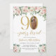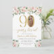 Convite de Aniversário do Elegante 90 com Foto | Acentos Florais e Dourados Comemoram em estilo com este belo convite de 90 de aniversário, com florais de aquarelas delicadas e sotaques de ouro. Esta elegante e feminina design enquadra sua foto personalizada, acrescentando um toque especial à sua celebração de marco. Perfeito para festas de jardim, embrulhos ou sofisticados sarauís, este convite personalizável dá o tom para um evento memorável. Edite facilmente o texto para incluir seu nome, detalhes da festa e muito mais — torne-o exclusivo seu!
