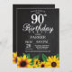 Convite de aniversário para 90 de girassol. Flores Florais e Fundo Chalkboard. Retro de Vintagem do País. Mulheres Aniversário. 15 de 12 de 16º 20 de 18º de 13 21rua 30 de 40º de 50º de 60º de 70 90 de 100º de qualquer idade. Digital Imprimível. Para mais personalização, clique no botão "Personalizar" e use nossa ferramenta de design para modificar este modelo.