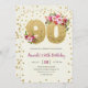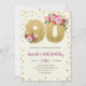 Placa de Convite Floral e Dourada para Largura Rosa para Festa de aniversário 90 com Números de Largura