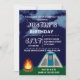 Convide seus convidados para uma divertida festa de aniversário ao ar livre com nosso convite único! Com uma deslumbrante céu azul escuro cheio de estrelas cintilantes, uma fogueira aconchegante e uma linda barraca azul, este design define o tom perfeito para uma noite de aventura ao ar livre. Os detalhes da sua festa estão listados em um formato moderno e divertido, facilitando para que seus convidados respondam e se juntem à celebração. Perfeito para amantes da natureza e entusiastas do ar livre, este convite certamente criará o clima para uma festa de aniversário inesquecível sob as estrelas.