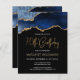 Este convite de aniversário de 70 de tendências apresenta uma imagem de aquarela de um geode agado em tons de azul com realces de ouro falsos. As palavras "70 Birthday" aparecem na falsa brilha dourada em letra decorativa moderna de escrita manual. Personalize-o com o nome do honroso em texto dourado e os detalhes em branco. A mesma imagem azul de agate aparece no lado inverso.
