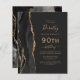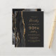 A borda esquerda deste elegante convite de aniversário moderno apresenta uma coloração aquosa preta e borda agitada com falso brilho dourado. O texto personalizável combina manuscrito dourado, fontes em copperplate e itálico em um fundo preto de slate. O verso apresenta um design de agate preto e dourado correspondente.