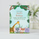 Convide familiares e amigos para o seu evento com este convite de aniversário personalizado. Apresenta ilustrações animais de um adorável leão com folhas e folhagem tropicais. Este convite é perfeito para os aniversários do tema verão, tropical e safari.