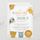 Celebre o seu grande dia com este adorável convite de aniversário com tema safari! Com um macaco alegre, girafa, zebra, leopardo, rinoceronte e leão, esta design de selva lúdica é perfeita para festas "Selvagem Um", aniversários de crianças, ou aventuras safari. Totalmente personalizável com o nome, a idade e os detalhes da festa do seu filho, este convite adiciona diversão e charme a qualquer celebração de temas da selva.