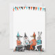 Animais bonitos aproveitando uma festa de aniversário em roupas de tendências de hipster. Raposa, coelho, coruja e texugo gostam de chapéus de aniversário e roupas de bolinhas.