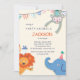 Um convite para a festa para a multidão jovem e selvagem que apresenta um macaco pendurado nas bandeiras do partido, um leão e um elefante. Todos os animais estão vestindo chapéus de festa. O cartão é fácil de personalizar com seu texto, fonte, cor da fonte e opções de tipos de papel.Não exatamente o que você está procurando? Todos os nossos produtos podem ser personalizados para atender às suas necessidades sem custos extras.Basta entrar em contato conosco em askpixieprints@aol.com. Coordenação de produtos disponíveis.