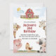 Convite para Amigos do Quintal! Apresentando um charmoso design de celeiro adornado com adoráveis animais de fazenda, este convite define o palco para uma celebração cheia de risos e alegria. Além disso, todo o texto é editável, então você pode adicionar seu toque pessoal e torná-lo especial. LANE01