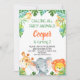 Esta festa de safari para crianças ou um convite de aniversário selvagem apresenta três animais bonitos de aquarela, um elefante, leão e girafa. Este convite é uma maneira fofa de convidar os seus convidados selvagens para a festa de aniversário dele. O título é editável. A design é particularmente adequada para uma primeira, segunda ou terceira festa de aniversário de rapazes. Essa é uma modelo para trabalhar e excelente muito fácil para uma festa de aniversário temática de animais safari. Os animais de festas com aquarelas deste menino ou o convite de aniversário selvagem de um safari estão prontos para serem personalizados.