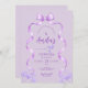 Celebre seu pequeno estilo com este Convite de Aniversário do Arco Roxo! 💜 🎀 apresentando um design de fita inspirado em coquete, este modelo elegante é perfeito para o primeiro aniversário, mas pode ser personalizado para qualquer idade. Com o seu encanto feminino e o olhar pastel moderno, este convite dá o tom para uma celebração doce e moda.
