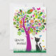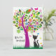 Gato de Siamês Preto, Cute Personalizado, com Árvore Flor Colorida e Borboletas, Horário de Verão, Convite para Meninas, Aniversário. Alguns gráficos em artwork©delightful-doodles.com ~