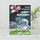 Um convidado de aniversário para crianças de foguetes e astronautas, personalizável, com um bonito homem de desenho animado em uma lua alienígena com um foguete vermelho e prateado. Com um espaço no capacete para o rosto do seu filho! Facilmente personalizado com os detalhes de sua festa de aniversário e face, basta alterar o texto ou, para maior controle, use o botão "personalizar". Todos os direitos autorais dos trabalho de arte.