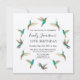 Este convite de aniversário inclui espécies exóticas de beija-flor, como beija-flores rufus e beija-flores de garganta inflamada. Personalize-o com seus detalhes de festa de aniversário usando os modelos fornecidos. O estilo da fonte, a cor da fonte e o tamanho da fonte podem ser alterados clicando em "personalizar mais".