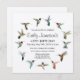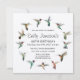 Este convite de aniversário inclui várias espécies de beija-flores nativas da América do Norte, como Rufous, Ruby-throated, Xanthus e Allen's Hummingbird. Personalize-o com seus detalhes de festa de aniversário usando os modelos fornecidos. O estilo da fonte, a cor da fonte e o tamanho da fonte podem ser alterados clicando em "personalizar mais".