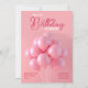 Convite de aniversário para balões cor-de-rosa