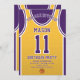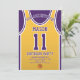 Celebre seu dia especial com este Convite de Aniversário de Basball Jersey, projetado para fãs de basquete verdadeiros! Com uma design ousada de camisa inspirada pelas icônicas cores roxa e dourada, este convite é perfeito para crianças, adolescentes e adultos que adoram o jogo. Personalize-o facilmente com seu nome, idade, detalhes de festas e até mesmo o número do grupo em apenas alguns cliques. Disponível em vários tamanhos, impresso em papel de qualidade superior com uma grande variedade de acabamentos para corresponder ao seu estilo. Escolha dentre diferentes tipos de papel, impressão rápida e envio rápido para que seus convites cheguem a tempo. Seja para uma festa com tema desportivo ou para uma comemoração de fãs Lakers, este convite é a forma perfeita de entusiasmar os vossos convidados.