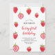 Um convite temático de morango doce para a sua festa de aniversário de morango primeiro. Apresentando uma bonito ilustração de morangos a cores aquáticas - você pode personalizar o texto com seus próprios detalhes!