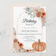 Comemore em estilo com este Convite de aniversário de Pumpkin Boho Fall. Com abóboras rústicas de aquarelas, flores de outono e sotaques de boho, este design elegante é perfeito para a celebração de aniversário de uma mulher, festa de outono jante ou reunião sazonal. Personalize com os detalhes do seu partido um convite exclusivo e na moda que define o tom para o seu evento especial. Ideal para aniversários de marco, temas de boho rústicos e festas inspiradas no outono.