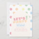Brilhe sua celebração com este animado e colorido convite de aniversário "Vamos Festa!", perfeito para crianças de todas as idades! Apresentando uma tipografia ousada e retrógrada e um fundo diverso de bolinhas arco-íris, este design traz alegria e energia instantâneas ao planejamento do seu partido. Personalize com o nome, a idade, os detalhes da festa e as informações de RSVP do seu filho para torná-lo exclusivamente seu. Entregue como download digital, este convite está pronto para impressão ou envio eletrônico — fazer fácil de espalhar o entusiasmo por um dia divertido!