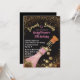 Champanhe chic e convites para o festival de aniversário reluz- Lê 'Brunch & Bubble' no topo em letras de cores modernas, douradas, com uma elegante e cor-de-rosa. Personalizado com o nome e o evento do convidado de honra em estilo de letra rosa correspondente. O brilho do ouro falso borda o topo e o fundo contra um fundo preto de carvão mate. A parte inferior tem folha de ouro rosa e falso, garrafa de champanhe de safra que pica a sua cortiça com folha falsa, bolhas de champanhe de ouro. As informações personalizadas de brunch de aniversário, incluindo detalhes de RSVP, são impressas em letras brancas abaixo à esquerda. A parte traseira tem fundo preto, que pode ser alterado para qualquer cor que você preferir. Convites de festas de aniversários adultos elegantes, prontos para serem personalizados com seus próprios detalhes. Temos guardanapos de papel para brunch coordenados e champanhe e outros convites para brunch no nosso compro Zazzle.com/angela65*.