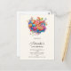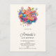 Cartaz de convite de aniversário com uma coleção colorida de flores de primavera e verão. Cor de laranja rosa e azul dominam o esquema de cores. Um arranjo floral brilhante e ousado exude felicidade. :)