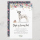 Woof! Convide a família e os amigos com este convite de aniversário de cão personalizável. Apresenta uma granja floral de cor d'água, um Dalmático fofo e um padrão floral correspondente para o verso do convite. Este convite para cães Dalmáticos é perfeito para festas de aniversário de crianças e festas de aniversário de cães. Os textos são perfeitamente editáveis para qualquer ocasião. Personalize adicionando seus próprios detalhes de evento.