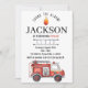 Convite de aniversário para caminhão de bombeiros