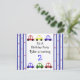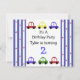 Uma design divertida para um aniversário jovem. Carros correndo em vermelho, amarelo, azul e verde. Bordas de listras vermelhas e brancas com pequenas estrelas vermelhas. Um design ousado e divertido.