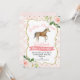 É um convite para o aniversário de um cavalo, na sua maioria coral, verde e ouro. Este convite bonito é uma boa maneira de convidar seus convidados para a festa dela. O design apresenta um cavalo de aquarela, dois arranjos florais de aquarela, uma armação e um padrão de bolinhas de ouro falso num coral fraco e num fundo listrado de creme. Também incluí um banner de aquarela de coral no design. O convite de aniversário floral desta garota está pronto para ser personalizado.