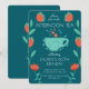 Convite de aniversário de festa de chá de flor abstrata com ilustração de xícara de chá e padrões florais delicados. Perfeito para celebrar um aniversário em qualquer idade, este design versátil adiciona um toque charmoso e atemporal ao seu dia especial.