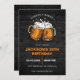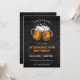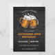 Um convite moderno com dois pinos de cerveja. O pano de fundo consiste numa ilustração dos tijolos pretos.