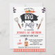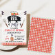 Aniversário do Churrasco do Kebab Roast do Porco Negro Convite Convite Convite Churrasco de quintal de quintal Bonito com silhueta de porco preto, carvão, kebab, espátula e garfo. Este convite de aniversário de Churrasco também apresenta um padrão de gingham.