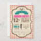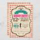 Convite de aniversário com estrelas rosa quentes e tema de cowgirl rústica.