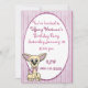 convite de aniversário para crianças adoráveis feito em uma faixa cor-de-rosa, com uma área de texto branco oval e um desenho animado bonitinho decorando a frente. Personalize todos os campos de texto para suas necessidades, com estilo de texto, cor e tamanho.
