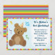 Veja seu pequeno no próximo grande ano com este convite de aniversário! Este bonitinho urso de pelúcia da festa está pronto para o fazer e convidar todos os amigos do seu pequenino para a próxima grande escavação. Uma borda arco-íris e fundo listrado mantêm este convite brilhante e divertido, e o texto editável significa que você pode personalizar estes convites para ser completamente personalizado para o grande dia!