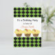 Um design clássico com bordas de padrões de diamante preto e verde. Cupcakes com fosco de limão com fatias de fruta destacando a parte superior. Personalize com todas as informações de aniversário conforme desejado.