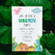 Este convite para o dinossauro Dino Mite é excelente para a festa de aniversário infantil. O convite apresenta uma tipografia brincalhona com dinossauros, folhas e plantas coloridos e bonitos. Personalize este convite com os detalhes do seu próprio partido.