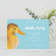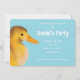 Um convite adorável para uma festa de aniversário divertida, mostrando um patinho amarelo liso em um legal fundo azul. Personalize-o sem esforço para artesanato convites de um tipo que certamente trarão sorrisos!