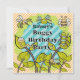Seu filho que ama insetos vai ter um pontapé nos nossos convites coloridos e alegres de aniversário da Festa de aniversário Buggy, que contém um fundo listrado amarelo e branco com bolinhas verdes e brancas sobre isso e outra camada de listras diagonais azuis revestidas com muitas plantas e insetos de vários tipos, incluindo uma mamangaba, libélula, joaninha, besouros, até mesmo um verme! Esses convites para aniversários sobre temas de inseto são fáceis de personalizar com todas as suas especificações de festa de aniversário antes de fazer pedidos!