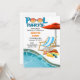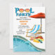 Convite de festas de piscina de aniversário de verão, completo com um guarda-chuva de na moda de pátio, uma cadeira confortável de praia, chapéu de sol de tendências e óculos de sol de moda, seus convidados serão transportados para um oásis de praia.