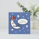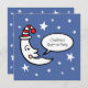 Uma ilustração da lua em seu boné noturno cercado por estrelas em um céu noturno claro.