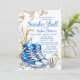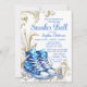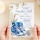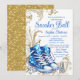 Convite de festa de tênis com tênis azuis bonitos e diamantes em um belo fundo de redemoinho dourado. Este convite de festa de tênis é facilmente personalizado para o seu evento, basta adicionar seus detalhes.