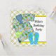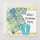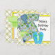Camisa havaiana, chinelos e margarita masculinos, convites de aniversário para churrasco na praia com qualquer número. Este divertido design de festa de aniversário com tema de praia tropical é ótimo para um churrasco casual, lua, festa de verão! Adicione seus detalhes na frente e atrás simplesmente escolhendo o botão laranja "Personalize!" para começar a adicionar os detalhes do seu evento, estilo de fonte, tamanho e cor da fonte e texto. Alguns gráficos gráficos©delightful-doodles.
