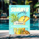 Convite de aniversário tropical comemorativo com um fundo de cocktail pina colada.