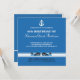 Branco e azul elegantes com sotaques a preto, modelo de convite de aniversário para festas de barco. Totalmente personalizável por você.