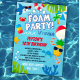 Personalize seus próprios convites para festas de espuma para meninos e meninas com um design de tubarão e abacaxi.