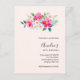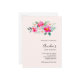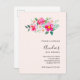 Convite de aniversário com uma imagem de aquarela. Um belo arranjo floral com cor rosa brilhante e rosa pastel aninhado entre folhas verdes e galhos.