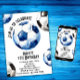 Este convite de aniversário de futebol faz parte de um conjunto de acessórios de festa de aniversário correspondentes. Seu filho de aniversário vai aproveitar cada momento deste dia especial. Este design apresenta as várias tonalidades de branco preto e azul com uma dica de ouro, juntamente com fontes fáceis de ler e muito espaço para adicionar todas as suas informações exclusivas. Para qualquer necessidade especial de design, fique à vontade para entrar em contato com o designer, enviando um email para choosehappystudio@yahoo.com